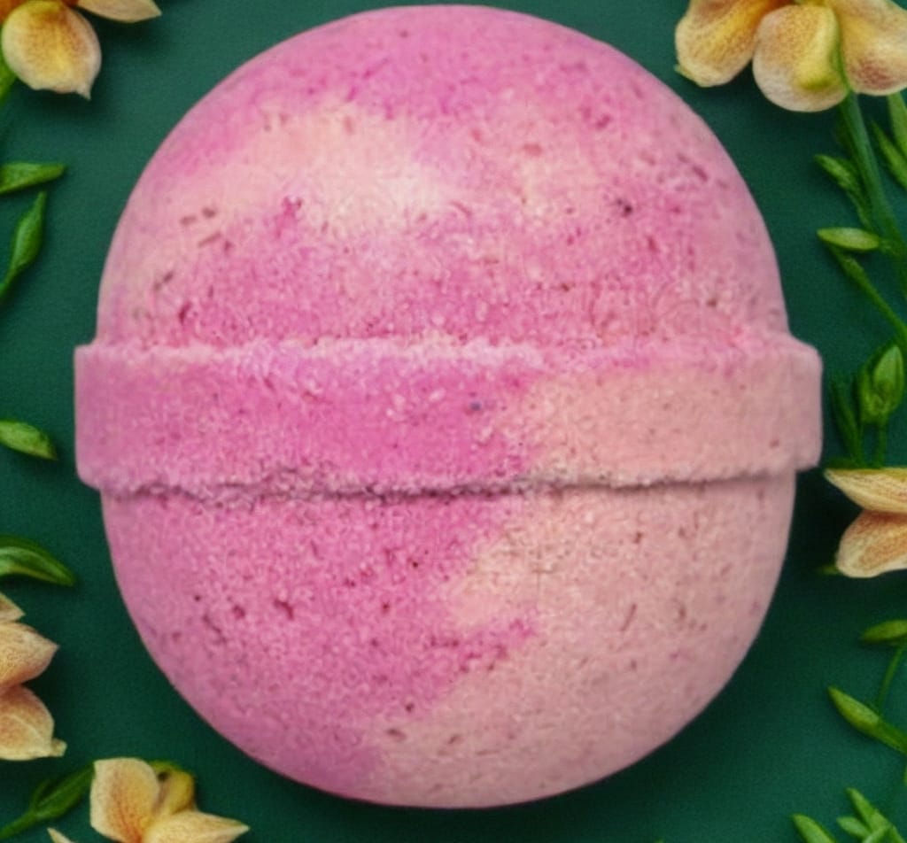 Fragrance: Rose, Tonka Bean, Lemon & Geranium Description:Romantic and elegant, this rose bath bomb fills...